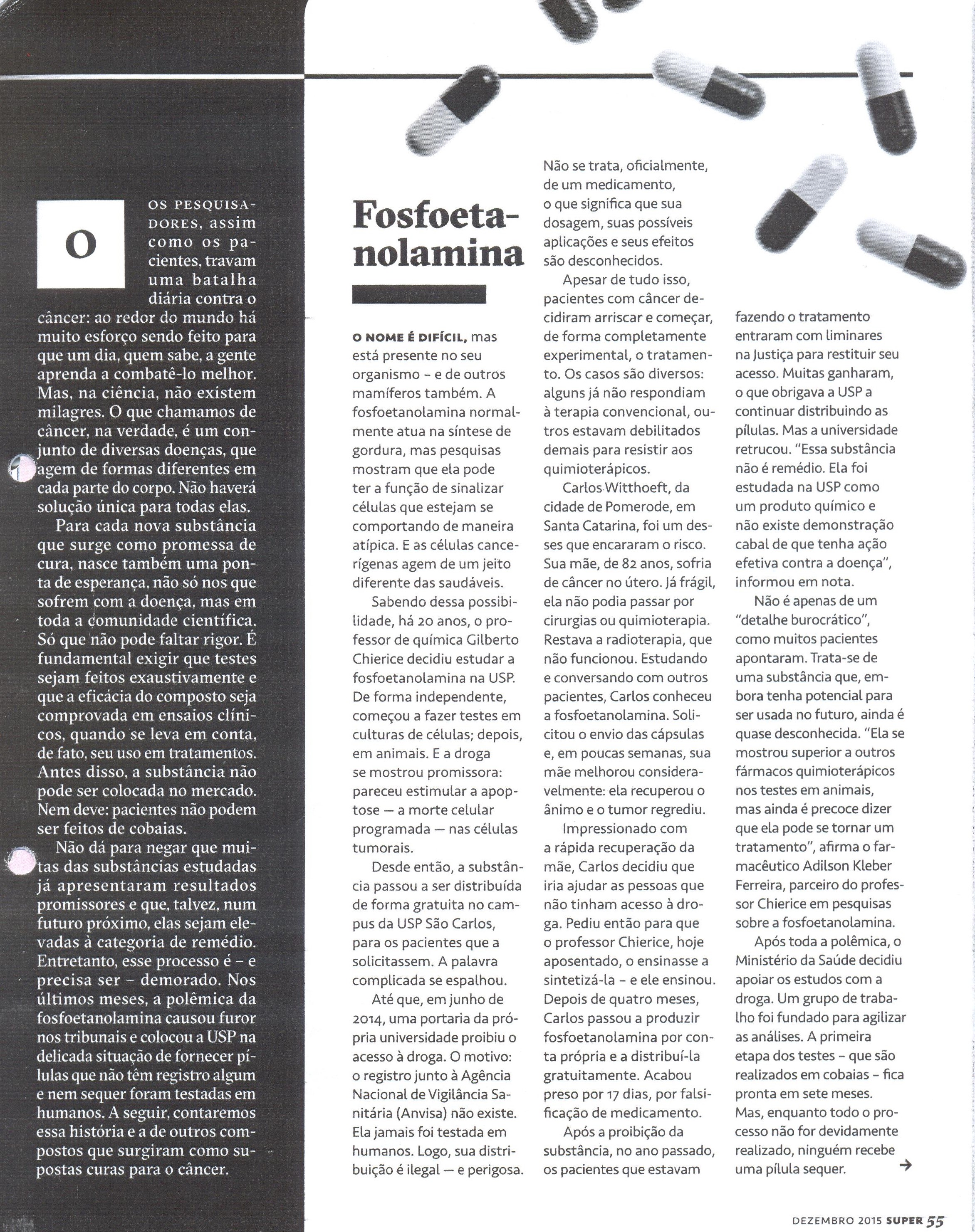 IQSC, USP, Química, Pesquisa, Fosfoetanolamina, Câncer, Gilberto Orivaldo Chierice