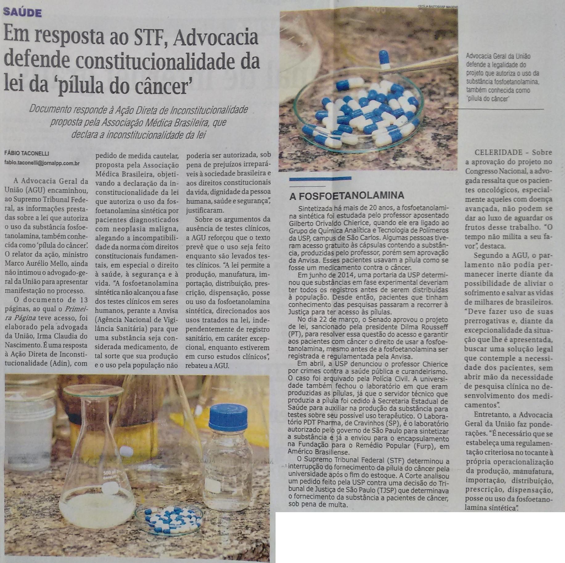 Em resposta ao STF, Advocacia defende constitucionalidade da lei da 'pílula do câncer'
