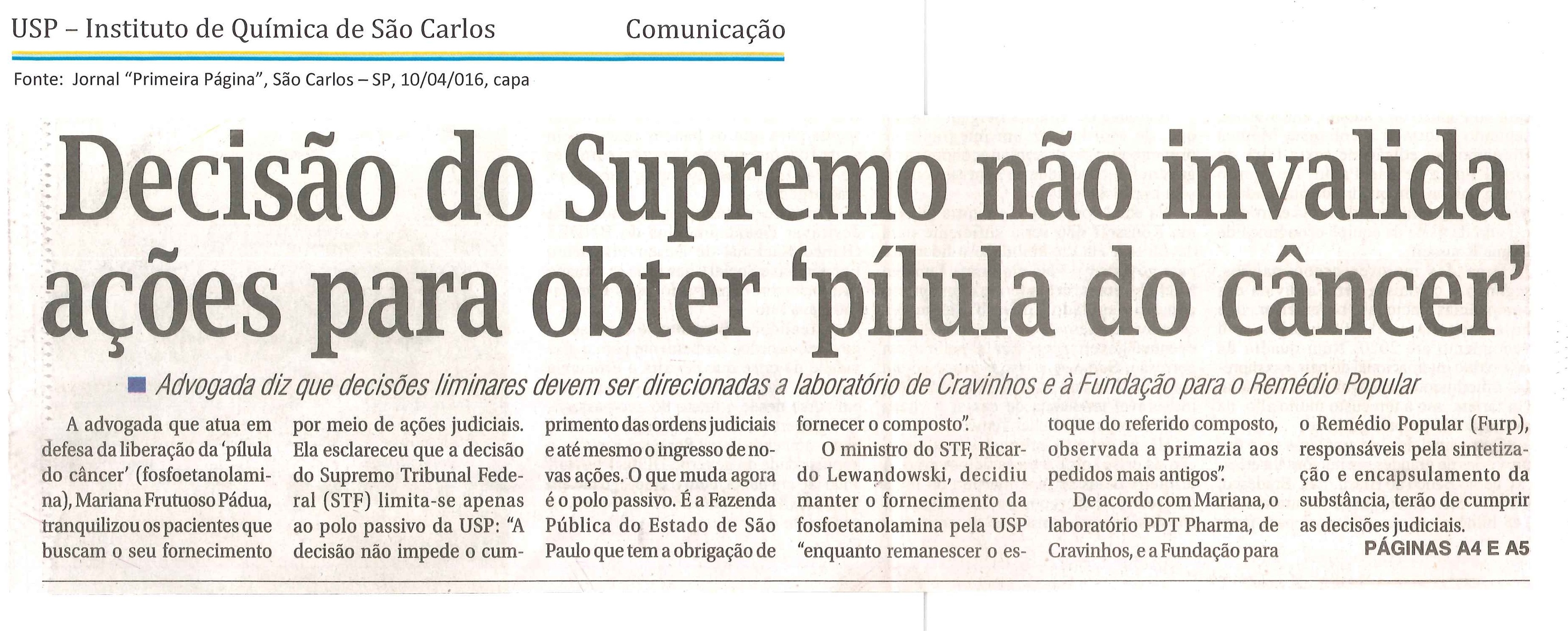 Decisão do STF não interfere nas ações judiciais para obter 'pílula do câncer'
