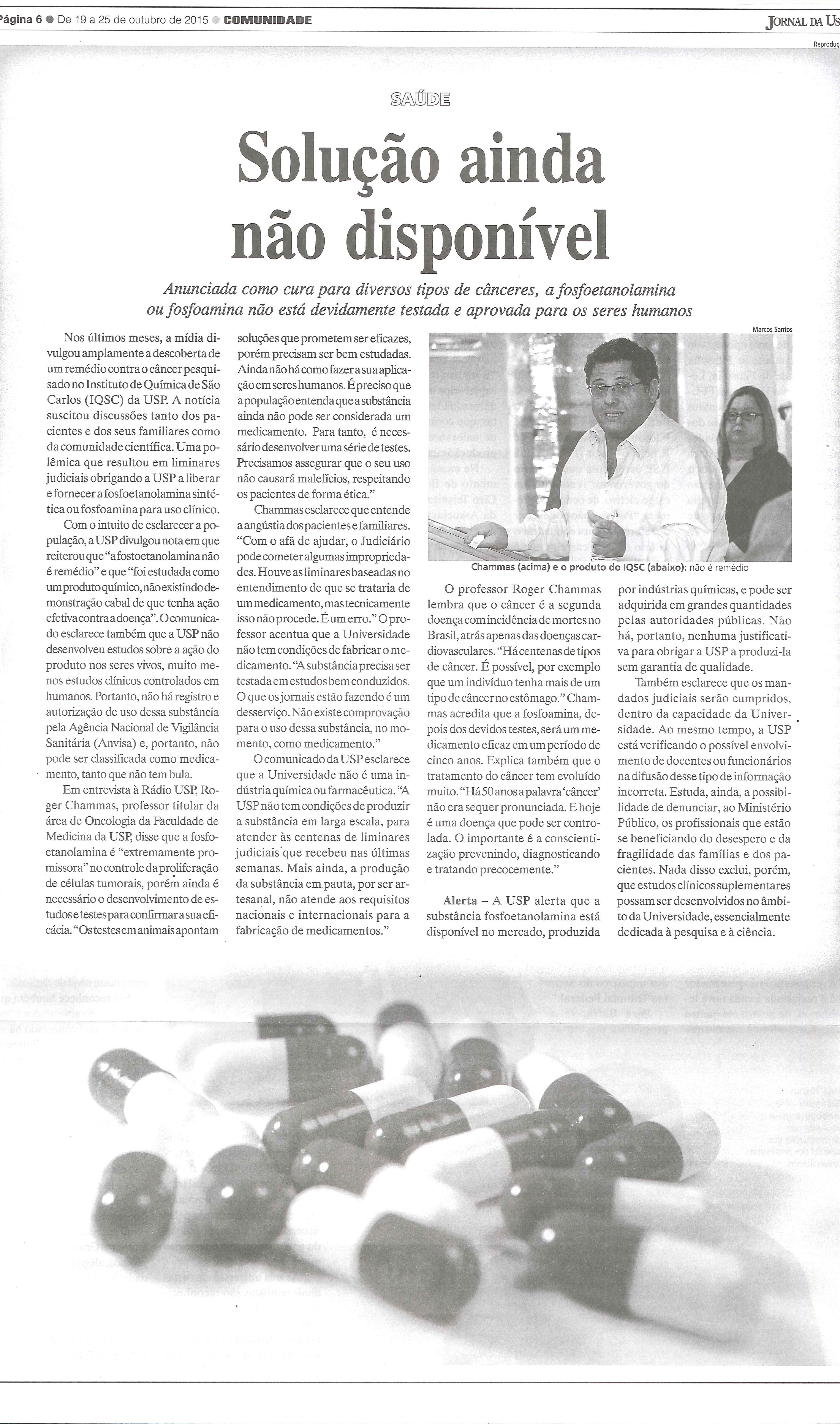 IQSC, USP, Pesquisa, Química, Câncer, Fosfoetanolamina, Gilberto Orivaldo Chierice